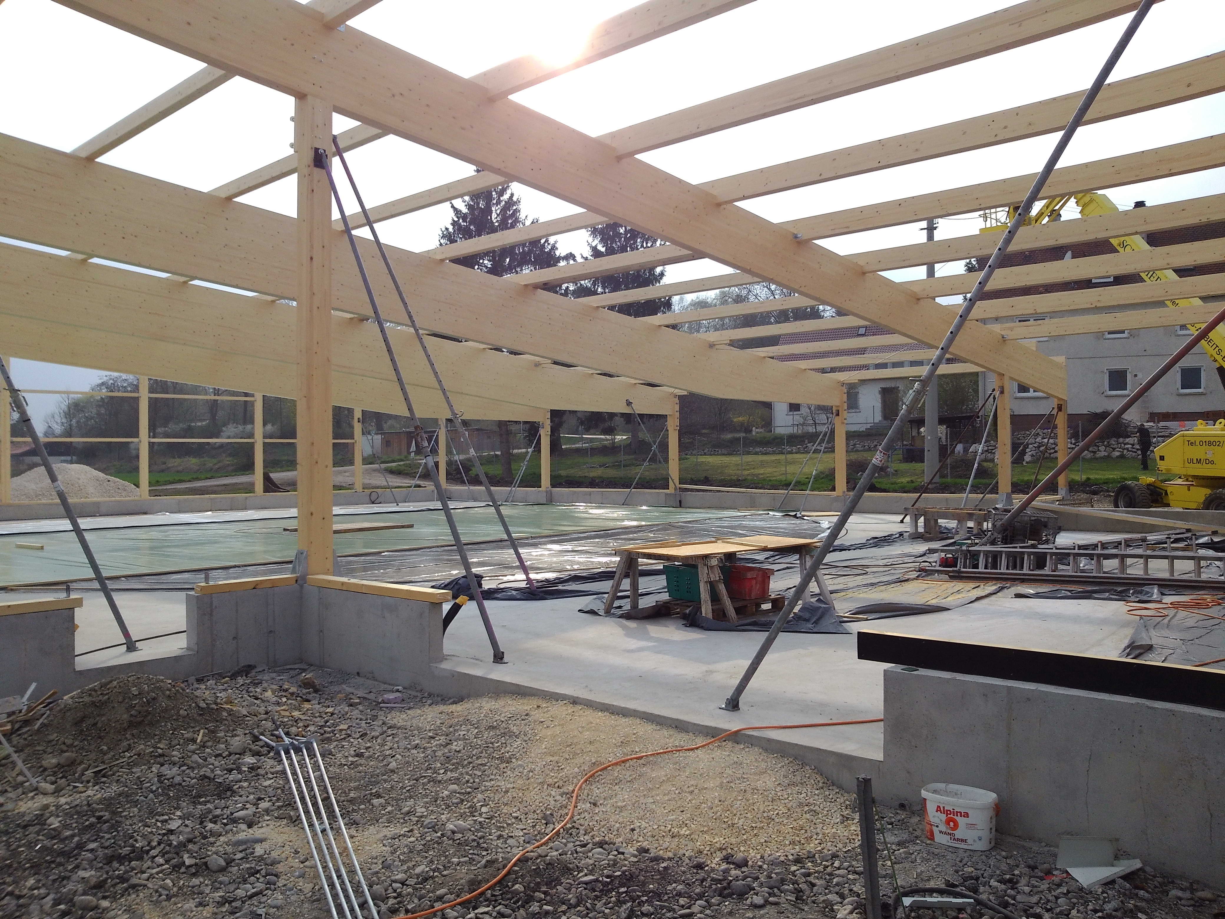 Hallenanbau: bald ist Richtfest Erstellt am 8. April 2014 von PeterOi Der Hallenanbau schreitet schnell voran, dank der guten Witterung konnte durchgehend gearbeitet werden. Nun ist schon zu erkennen, wie das Ganze aussehen wird: Auch der Drehteller ist schon fertig. Und noch diese Woche wird Richtfest sein !